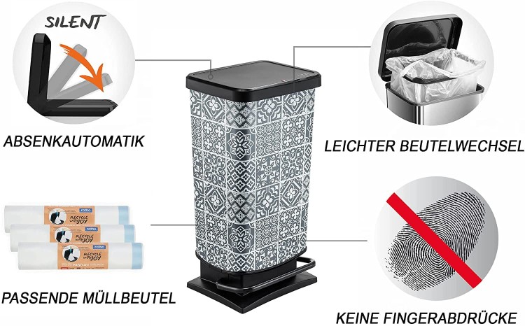 Kosz na śmieci z pedałem Rotho PASO 40l tiles
